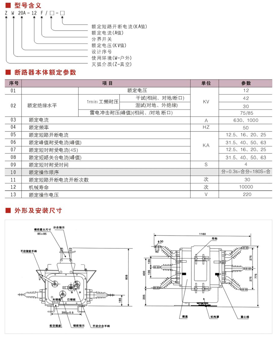 ZW20-12F真空斷路器(帶看門狗PT)