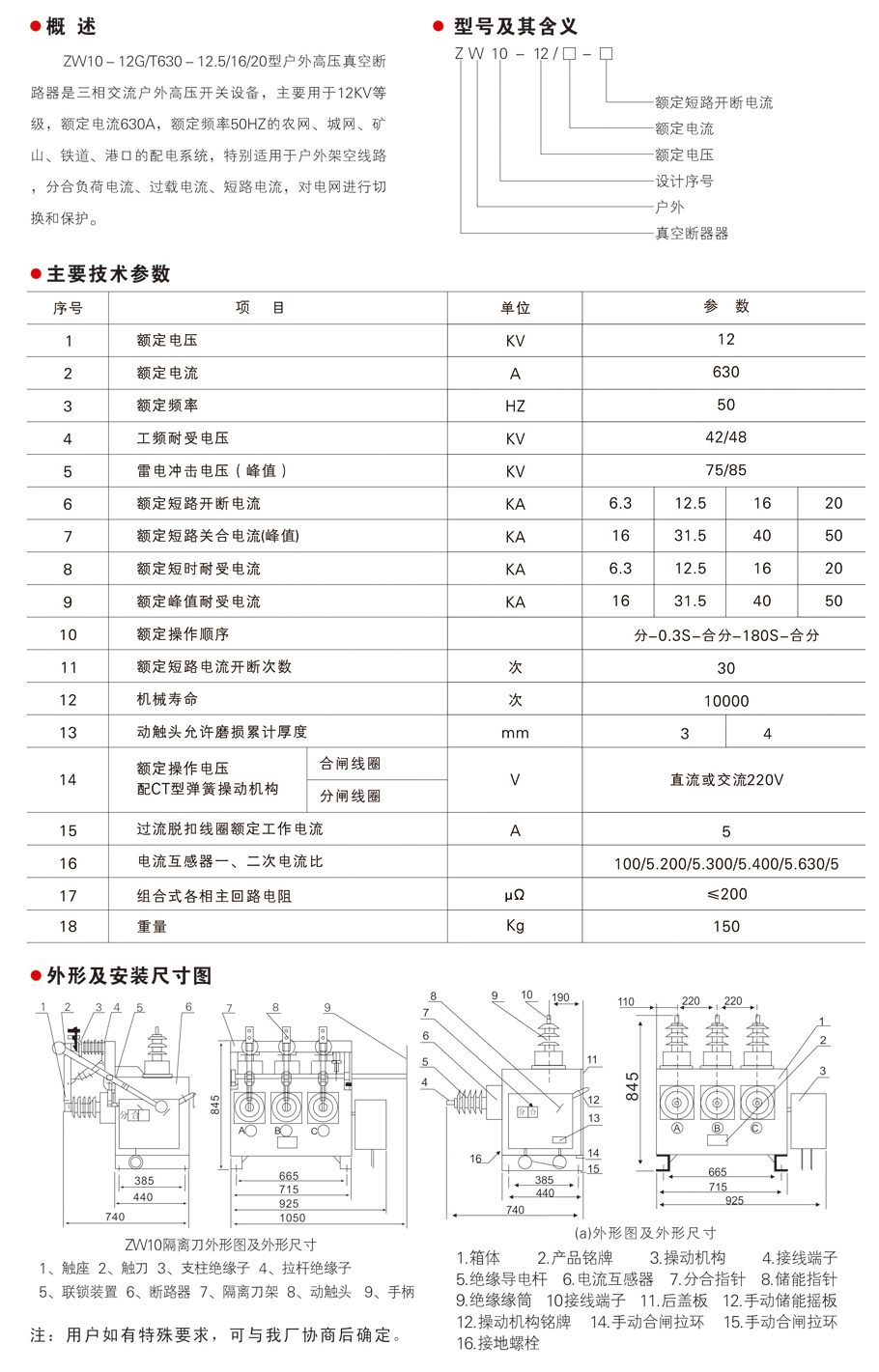 ZW10-12真空斷路器(不銹鋼外殼)