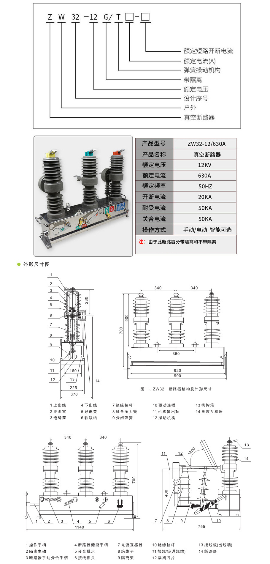 ZW32-12G不銹鋼真空斷路器(帶隔離刀閘)