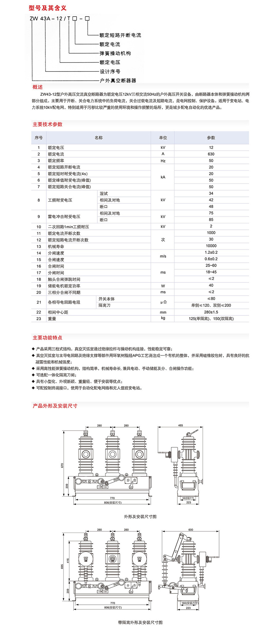 ZW43-12真空斷路器(不帶隔離)