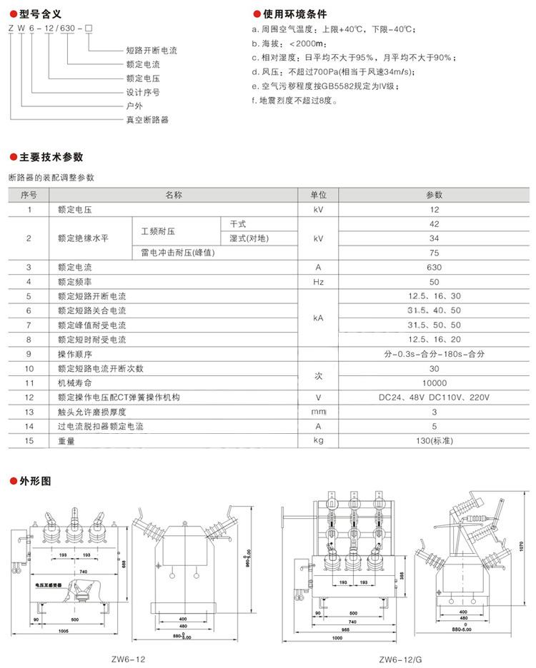 ZW6-12型戶外高壓真空斷路器(以下簡(jiǎn)稱斷路器),是三相交流50Hz、12kV的戶外高壓配電設(shè)備,用于開斷、關(guān)合電力系統(tǒng)中的負(fù)荷電流、過(guò)載電流和短路電流,更適用于頻繁操作的場(chǎng)所。斷路器配用CT23彈簧操動(dòng)機(jī)構(gòu),可實(shí)現(xiàn)電動(dòng)儲(chǔ)能、電動(dòng)分合閘,也可手動(dòng)儲(chǔ)能和手動(dòng)分合閘。根據(jù)用戶需要,斷路器可內(nèi)裝100/5、200/5、400/5及600/5的電流互感器。內(nèi)置JSZR-10W干式電壓互感器,加裝一次熔斷器保護(hù),實(shí)現(xiàn)自備操作電源,也為配備各種重合器或遠(yuǎn)動(dòng)終端提供操作電源。配套合適的控制系統(tǒng),可作為重合器或分段器,是城鄉(xiāng)電網(wǎng)無(wú)油化改造的首選產(chǎn)品。