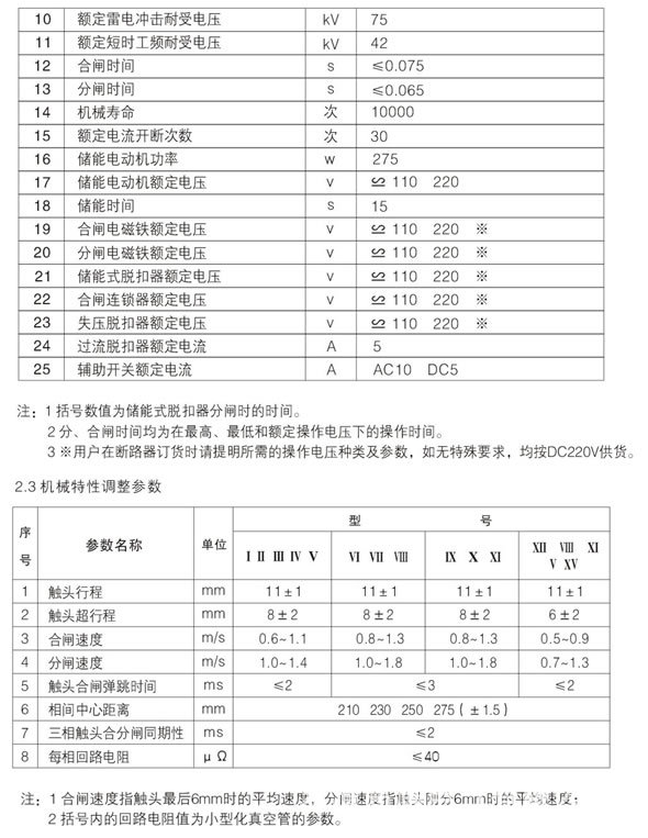 8每相回路電阻 Ω≤30(40)注:合閘速度指觸頭最后6mm時(shí)的平均速度.