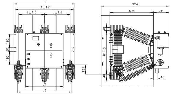 6相間中心距離mm210 ±1.5230±1.5280±1.5