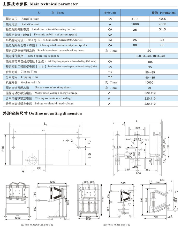 ZN12-40.5/1250-31.5主要技術(shù)參數(shù)