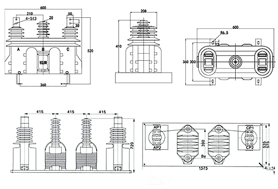3 高壓計量箱和組合互感器可一體連接,組成連體高壓計量箱,在柱上安裝使用;也可以分別安裝,柱上安裝組合互感器,下面安裝計量表箱,中間用鎧甲電纜連接。