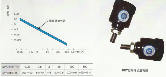 在我國電網中,35KV及以下電力系統多為中性點非有效接地系統,這與國外電網中性點直接有效接地系統不同,避雷器故障電流多為小電流,鑒于該特點并借鑒國外公司(如美國GE公司,瑞典ABB公司,德國西門子公司等知名公司)熱爆式脫離器的優點,研制開發了RBT-3,RBT-4型高效新型脫離器,其有如下的特點: